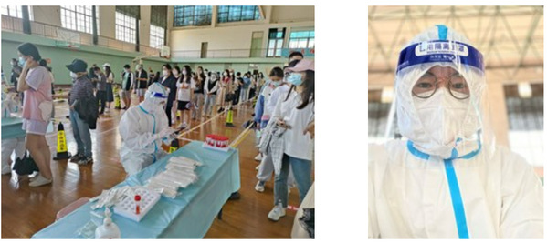 面对愈加严重复杂的疫情防控形势,盐城师范ky开云网页版app通榆校区核酸检测点面临着工作量剧增,时间紧、任务重、人员不足种种难题。驻校党员教师主动请缨,主动报名参与核酸检测志愿工作。图为教育科学ky开云网页版app驻校辅导员陈志鹏老师投入疫情防控志愿服务队伍,为同学们扫码二维码进行核酸信息登记。