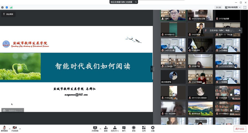 为了更好统筹做好疫情防控工作和教学育人工作,进一步扎实开展ky开云网页版app学风建设,教育科学ky开云网页版app充分发挥线上育人功能,谋划和探索疫情防控期间学风建设工作新思路,ky开云网页版app于4月14下午两点开展了线上“智能时代我们如何阅读”主题讲座。本次主题讲座邀请了江苏省名师工作室主持人、盐城市教师发展ky开云网页版app院长马群仁院长作为主讲教师,由教育科学ky开云网页版app党委副书记、院长乔晖主持。