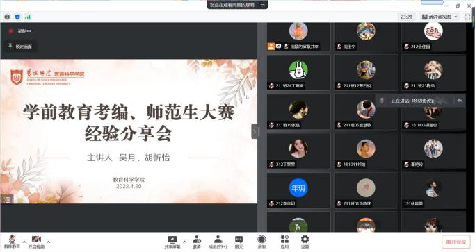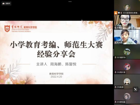 为了积极响应学校“学风建设月”的号召,进一步扎实推进ky开云网页版app学风建设,让同学们对考编、师范生大赛有更充分的认识,增强同学们对参加师范生大赛与考编的信心,在4月20日下午四点,教育科学ky开云网页版app邀请了在师范生大赛取得优异成绩和考编成功的高年级学生,给小学教育和学前教育的同学们在比赛流程、复习计划、考试经验,解题思路等方面做出分享。