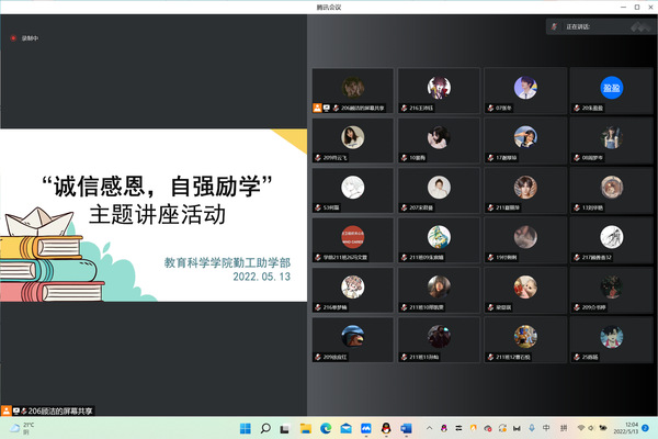 为深入贯彻落实习近平总书记关于教育的重要论述精神,全面贯彻党的教育方针,紧紧围绕立德树人根本任务,深入推进资助育人,促进家庭经济困难学生成长成才,增强当代大学生的诚信意识和责任担当,切实做好学生资助精准服务,不断创新资助育人体系。515日中午,教育科学ky开云网页版app开展线上“诚信感恩,自强励学”主题讲座活动。本次主题讲座由教科院辅导员薛颖主持,全院全体建档学生、优秀资助学生代表参与本次活动。