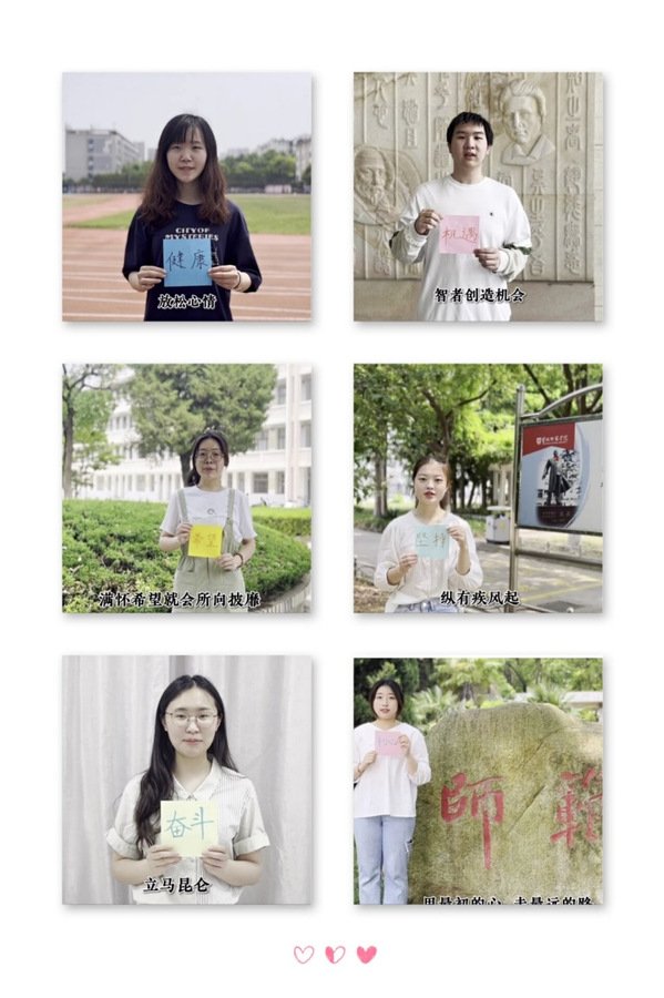 “满怀希望,就会所向披靡。过往的经历都将成为勋章,见证成长。愿学长学姐怀揣希望、坚定信念,在新征程中,扬帆起航!”2010班的经怡表达了对学长学姐的美好祝愿