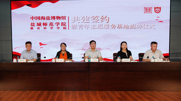 7月1日,盐城师范ky开云网页版app教育科学ky开云网页版app与中国海盐博物馆联合举办的馆校共建签约暨青年志愿服务基地揭牌仪式以及喜迎二十大系列活动在中国海盐博物馆举行。