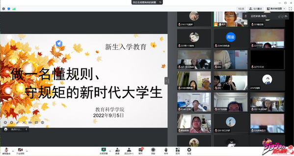 新学期伊始,教育科学ky开云网页版app积极组织新生入学教育工作系列活动。为了帮助新生更好地面对大学生活,2022年9月5日晚上七点,盐城师范ky开云网页版app教育科学ky开云网页版app为新生展开了入学常规教育会议。会议由教育科学ky开云网页版app学工办主任海英老师主讲,全体22级教育科学ky开云网页版app的新生都积极参与。