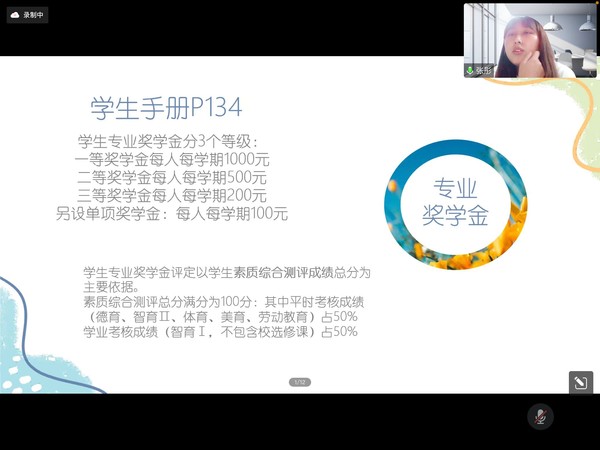 王诗婧学姐介绍了本科生学分制办法,通过这一部分的学习,了解专业培养目标、课程考核、学分计算等。