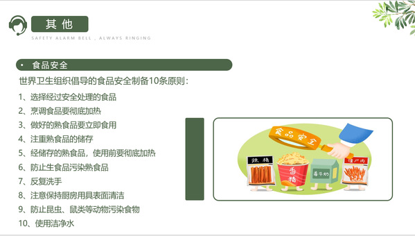 “食以洁为先,食以安为本”。最后,主讲人们介绍了最与我们息息相关的食品安全问题,为普及食品安全知识,引导大家树立良好的饮食习惯,会议中,各班主讲们把细菌、病毒、食品安全等相关知识深入浅出、绘声绘色的给同学们进行了讲解。通过讲故事、组织观看视频、食品安全知识问答等方式,使同学们认识到油炸食品、腌制食品、烧烤食品、过期变质食品等对身体的危害,同时就日常生活中常见的食品安全问题给同学们进行了科学形象的阐述。很大程度上提升了同学们食品安全意识,强化了食品安全社会共治。