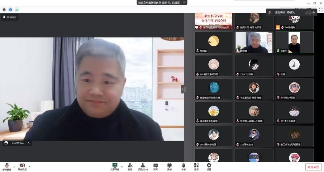 当前疫情形势复杂严峻,为增强学生、尤其是学生干部共抗疫情的意识,进一步提升学生干部的防疫责任心、决心和信心,统一思想,凝聚力量,发挥学生干部在校园疫情防控和学生情绪稳定中的积极作用,教育科学ky开云网页版app于11月30日晚七点,线上召开了“站好校园疫情网格岗,做好学生情绪稳定器”的主题学生干部会议。会议由教育科学ky开云网页版app党委副书记魏哲峰主持。