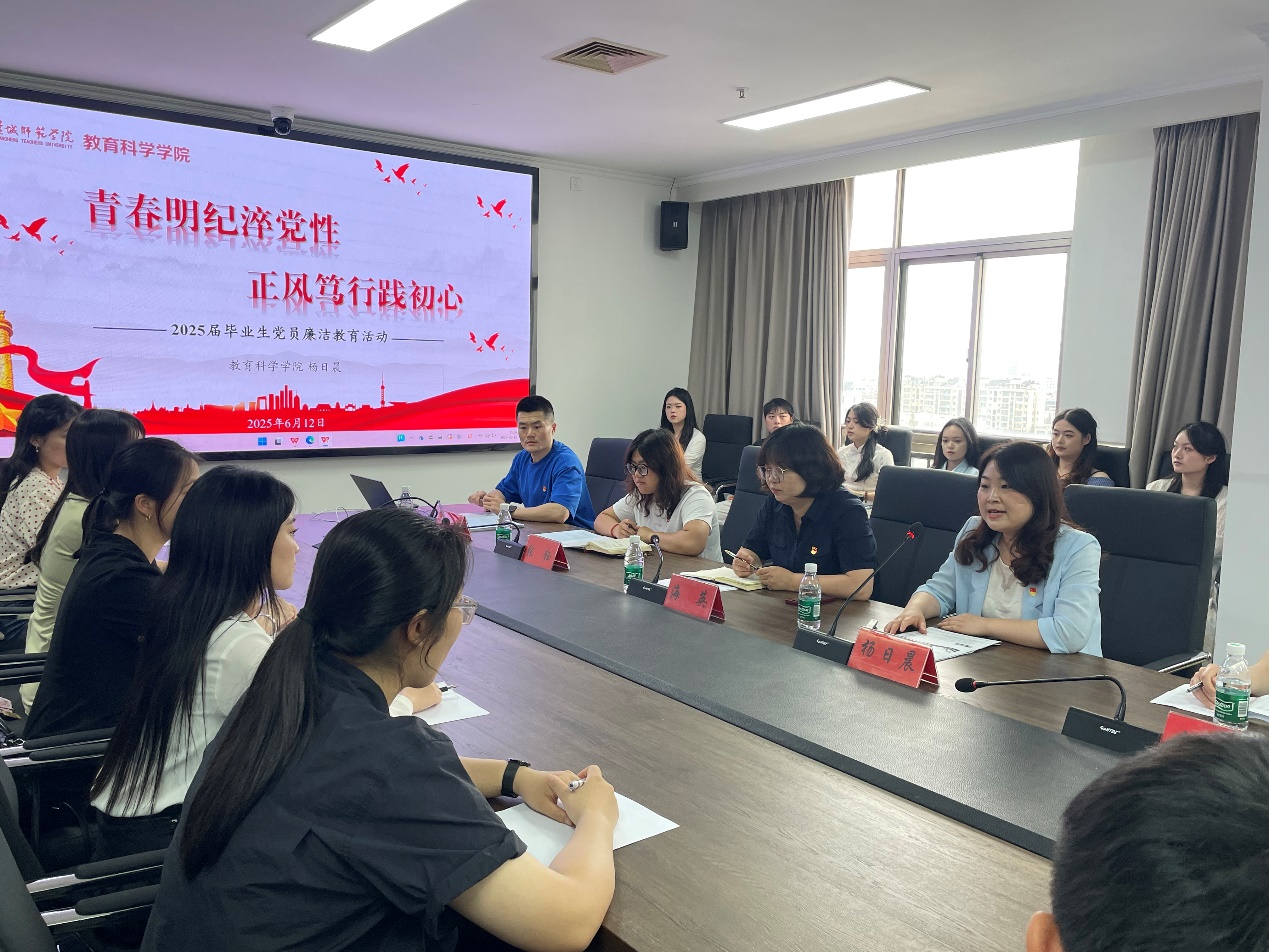 为深化毕业生党员理想信念教育,引导其铭记入党初心,勇担时代使命,6月13日,教育科学ky开云网页版app开展了2025届毕业生党员离校教育暨廉洁从业主题教育活动。ky开云网页版app党委书记杨日晨、支部书记及全体毕业生党员参加本次活动。党委副书记海英主持活动。