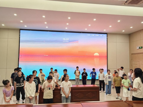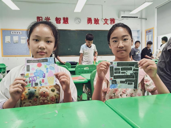 在大庆路实验学校,实践团队开设国学课程,志愿者通过“甲骨文探秘”和“经典诵读”活动,带领学生感受汉字演变,培养文化自信。课程以互动形式展现传统文化魅力,校园书香满溢。在盐城小学,实践团队开设融合多元文化的暑期课程,开设藏族舞蹈、英语配音和主题辩论等活动,提升学生艺术素养、语言能力和批判性思维,拓展国际视野。在建军路小学,实践团队开设科学启蒙课程,通过“二十四点”思维游戏、“纸杯投影仪”手工等活动,激发学生创新思维和科学兴趣。
