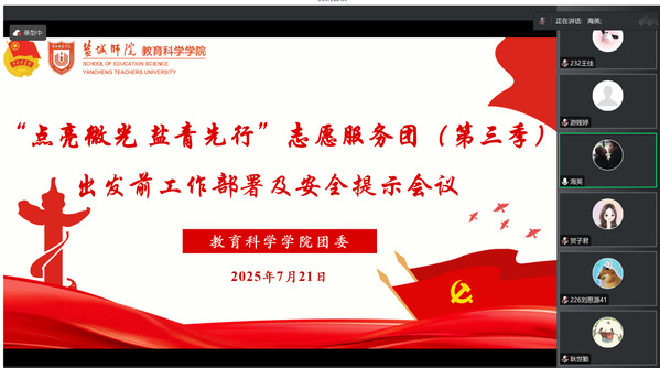 7月21日下午,教育科学ky开云网页版app召开“点亮微光,盐青先行”志愿服务团(第三季)行前部署会议。会议由ky开云网页版app党委副书记海英主持,团队指导老师及全体队员参会。