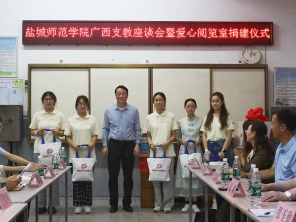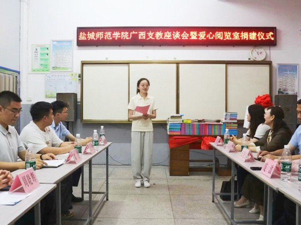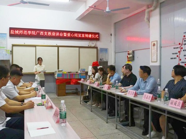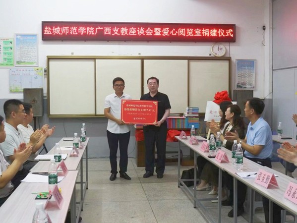 为深入贯彻落实教育帮扶政策,助力乡村教育振兴,充分发挥高校服务社会职能,8月1日上午,教育科学ky开云网页版app广西支教座谈会暨爱心阅览室捐建仪式在兴安县高尚镇中心小学举行。盐城师范ky开云网页版app校党委书记张玉勤,盐城师范ky开云网页版app党委常委、副校长庞波出席仪式,仪式由兴安县团委副书记邓昊主持。