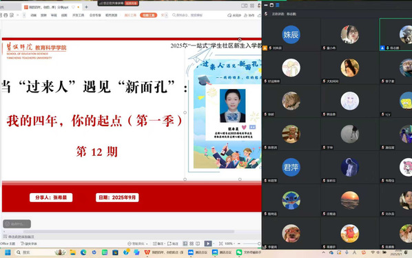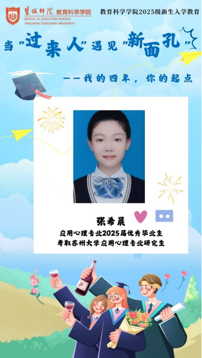 为帮助2025级新生更好地适应大学生活,明确学习目标,做好学习规划,9月1日晚,教育科学ky开云网页版app邀请到2025届应用心理学专业优秀毕业生张希晨作为“当‘过来人’遇见‘新面孔’:我的四年,你的起点”主题分享会第12期分享者。在考研形势不断严峻的当下,张希晨仍能千帆过尽,不坠青云,脱颖而出,考取苏州大学应用心理学专业研究生。她的大学四年是不断试错,积极进取的修炼过程。让我们循着她成长的足迹,思考其成功的秘诀。