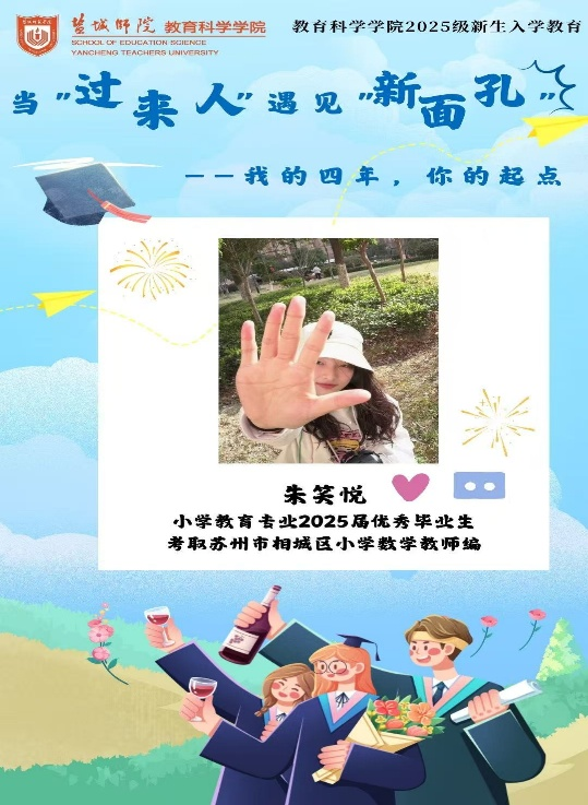 为帮助新生领略到专业学习和技能训练的高效方法,明确大学生活的成长方向。8月25日晚,教育科学ky开云网页版app邀请2025届小学教育专业优秀毕业生朱笑悦——一位考编“过来人”作为“当‘过来人’遇见‘新面孔’:我的四年,你的起点”主题分享会第6期分享者。大学四年间,她劈波斩浪,积极进取,最终考取苏州市相城区小学教师编。从青涩迷茫到成熟坚定,跨越梦想与现实的距离,朱笑悦用四年的光阴完成自我的磨砺,于毕业季收获了成功的果实