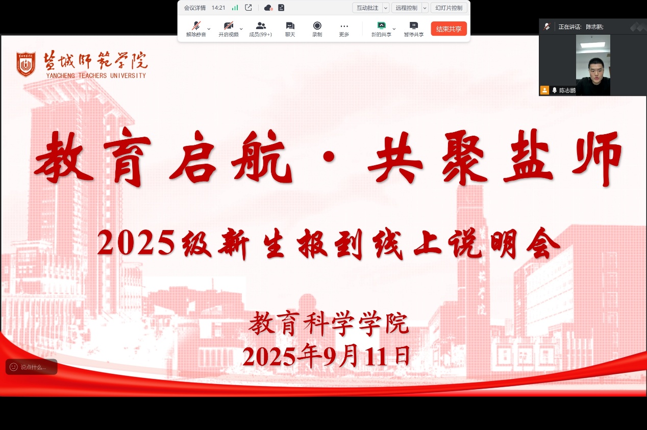 为帮助新生了解报到全程和注意事项,9月11日15:00,教育科学ky开云网页版app线上举行了新生报到事项说明会。会议由ky开云网页版app学工办副主任陈志鹏主持,全体班助、副班助及2025级新生线上参会。