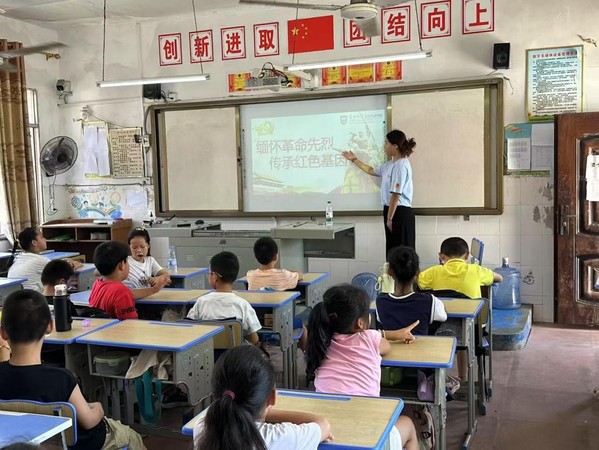 日子在课堂与校园的日常里缓缓流淌,支教时光虽短,却藏着无数温暖瞬间。课堂上,我用红色故事唤醒孩子们对信仰的认知;课堂外,孩子们用毫无保留的笑容、真诚的关心治愈我。他们会围着我分享校园里的趣事,会在我板书时悄悄递上纸巾,这些细碎的举动,像一束束微光,不断加深我对教育意义的理解。